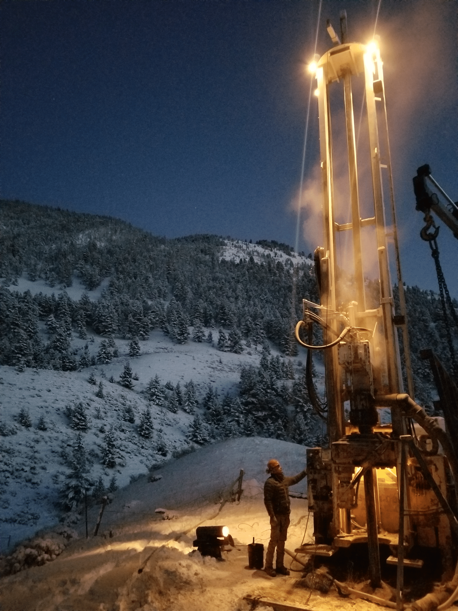 By using modern technology we were able to pin point our best chances of providing a quality and sustainable water source with seismic readings that were performed all around the property. When we were able to start the drilling process it was in the fridge month of February in the midst of a exceptionally cold Montana winter with Temps dropping to -26°F! After clearing a path through 2 feet of snow with a skiddsteer we were able to start bring in our equipment to begin the drilling process.